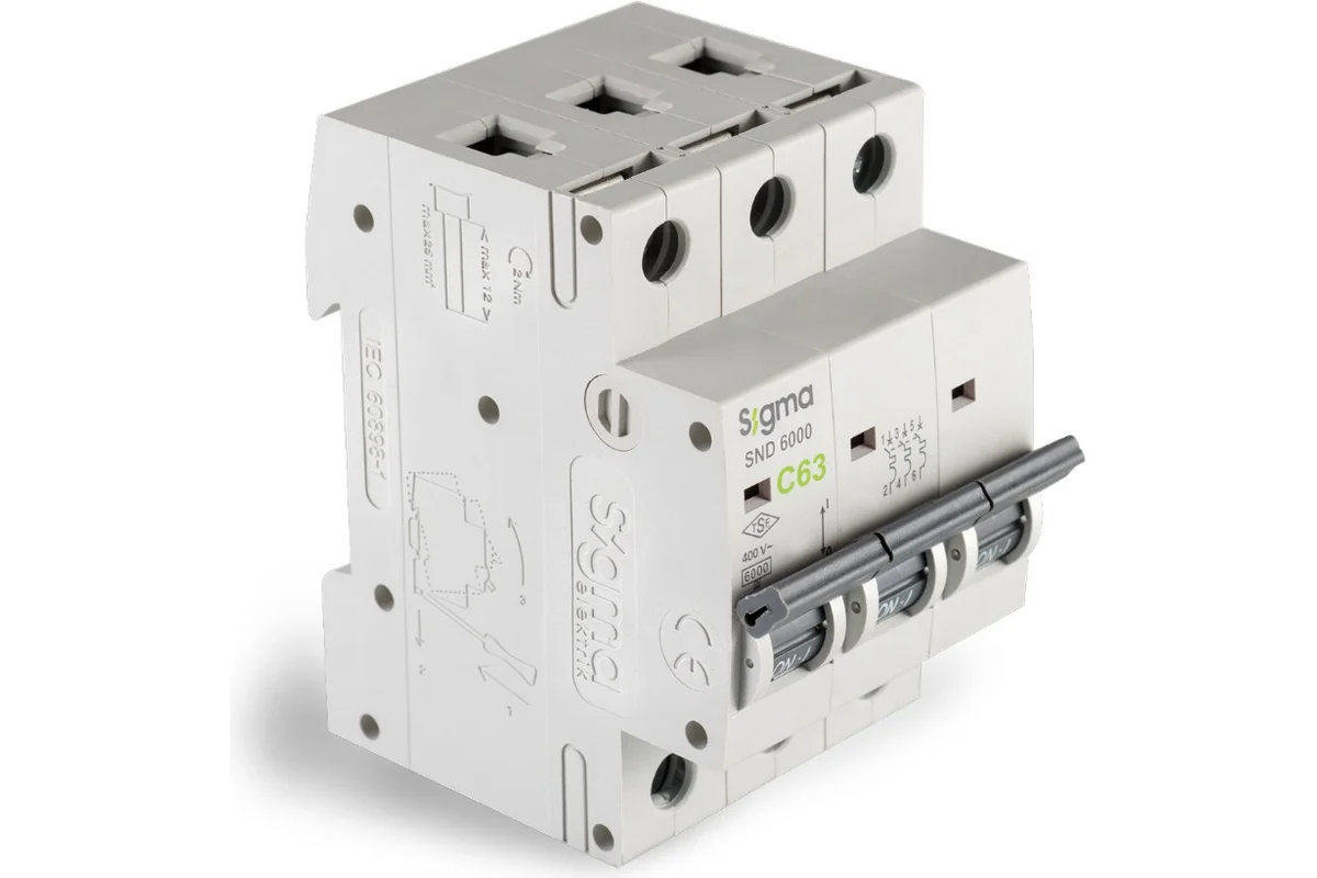 El disyuntor Sigma está diseñado para proteger contra sobrecargas y cortocircuitos. Un indicador muestra si está activado o desactivado.