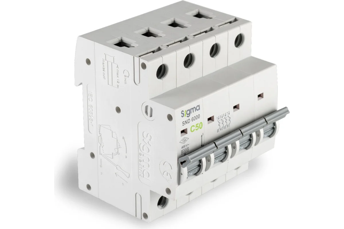 El interruptor automático Sigma está diseñado para proteger contra sobrecargas y cortocircuitos. Un indicador muestra si el interruptor está activado o desactivado. Fabricado en Turquía según las normas TS 5018-1 EN 60898-1, GOST IEC 60947-1-2014 y CE.